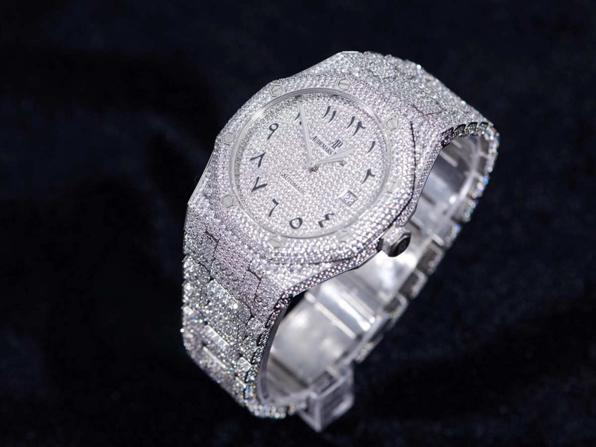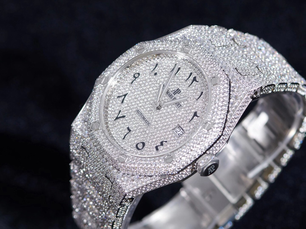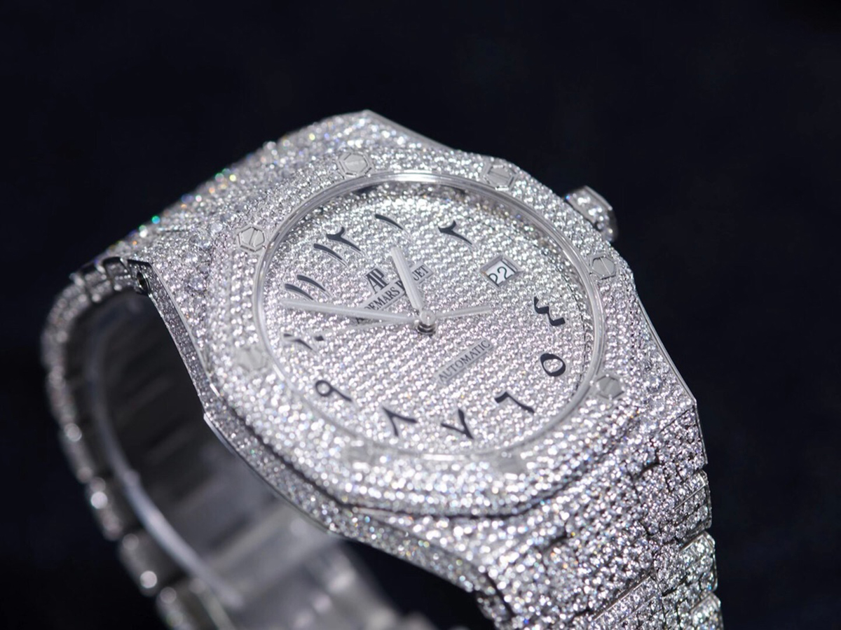 Royal Oak 41mm 15400 Iced Out Steel in Arabic Markers