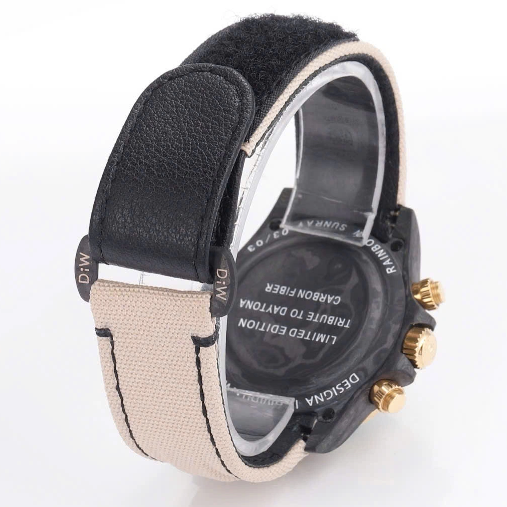 | Please Note: This is a Custom Made Rolex Daytona Super Clone made of Real forged Carbon Fiber. The use of Carbon case makes this watch the lightest Daytona ever produced | |
