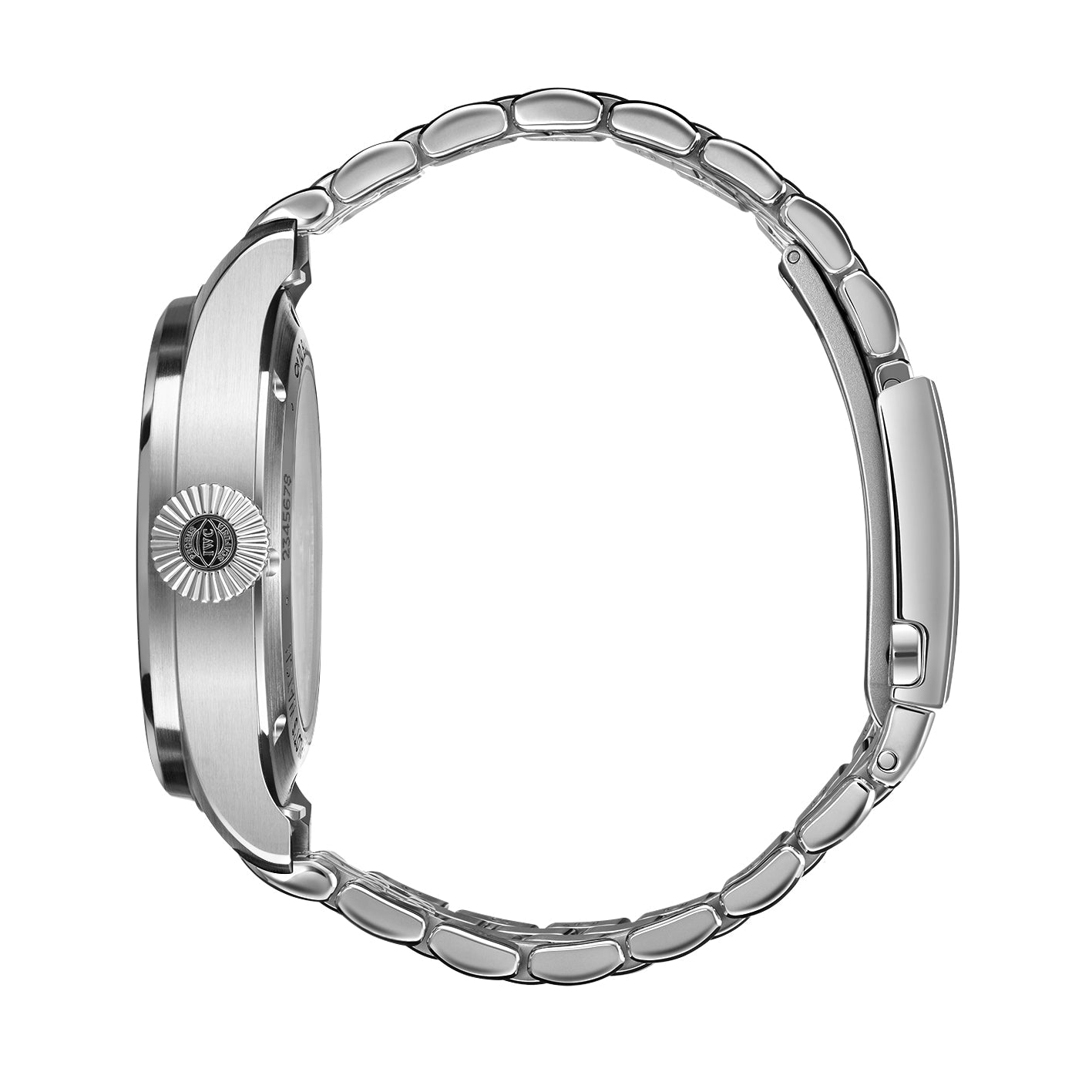 Highlights: The Big Pilot’s Watch 43 (IW329304) is a faithful interpretation of this original design without any additional elements on the dial, and in a 43mm stainless steel case that combines an amazing presence on the wrist with maximum wearing comfort. This model features a blue dial, rhodium-plated hands and a high-quality stainless steel bracelet with fine adjustment system and tapered shape for improved ergonomics. Visible through the sapphire glass case back is the IWC-manufactured 82100 calibre. The Pellaton winding system has been reinforced with ceramic components and builds up a power reserve of 60-hours.