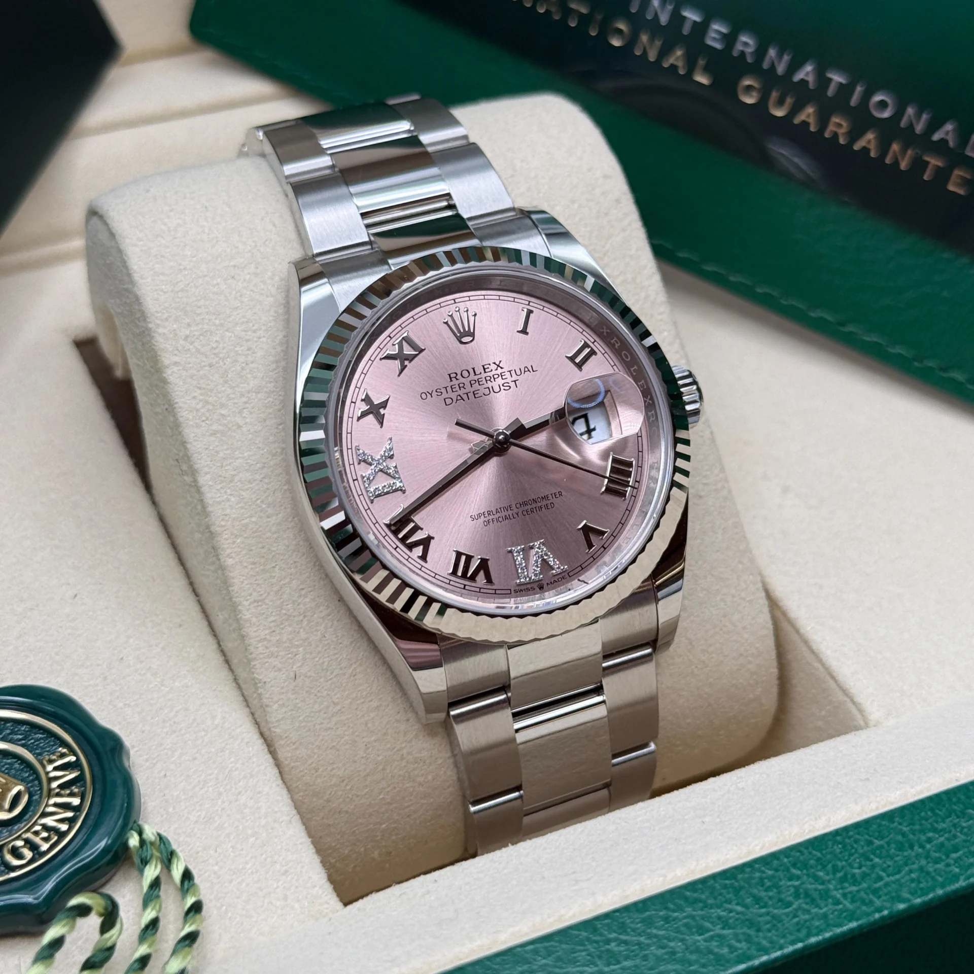 RLX Datejust 36mm 126234 Pink Roman Dial Oyster Stainless Steel