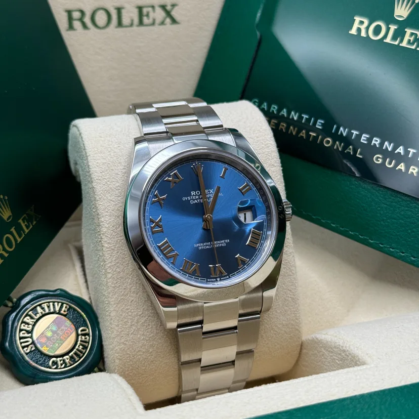 RLX Datejust 41mm 126300 Blue Roman Oyster Stainless Steel Watch