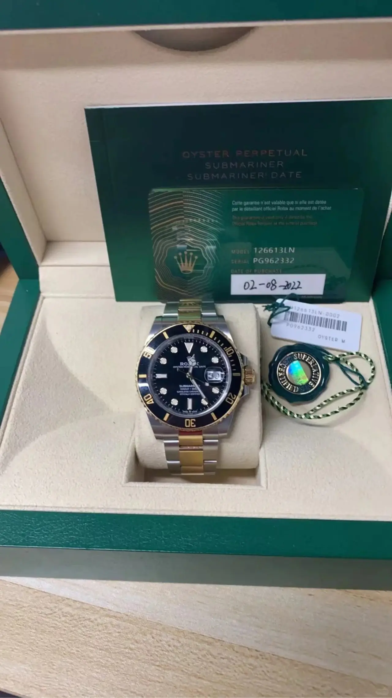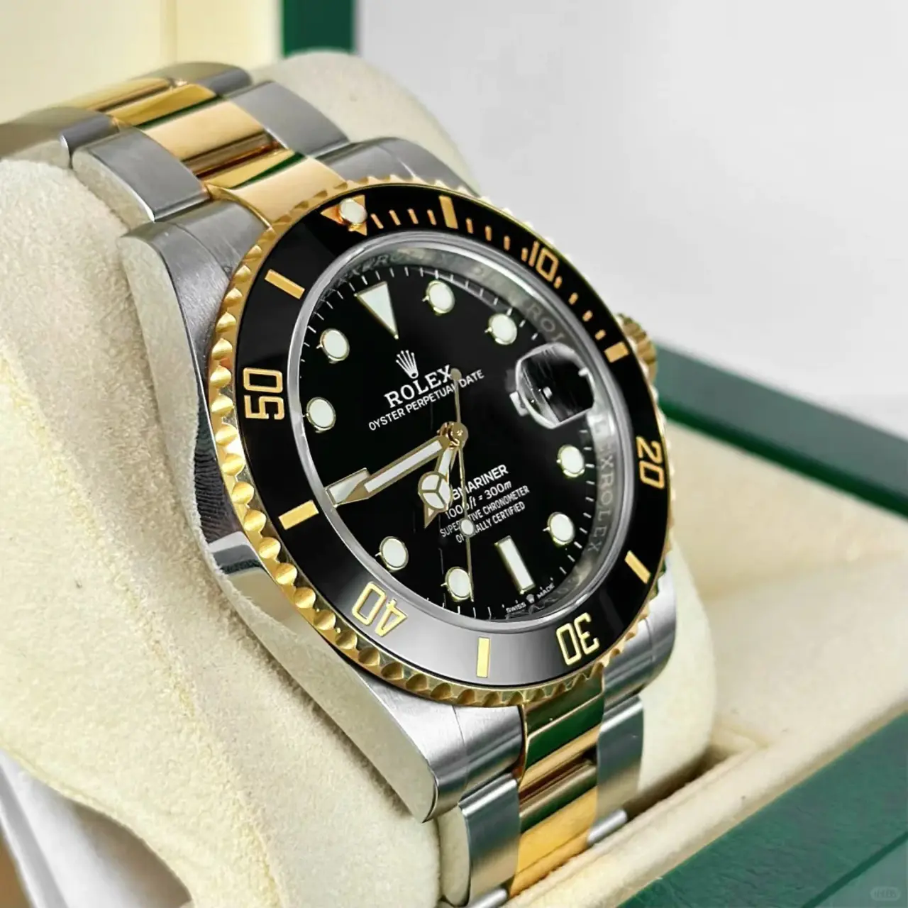 Brand new Rolex Submariner, Reference # 126613ln-0002, 41 mm. Yellow Rolesor - a combination of Oystersteel and 18 ct yellow gold watch with all original accessories, original Rolex box, and Rolex Warranty Card.