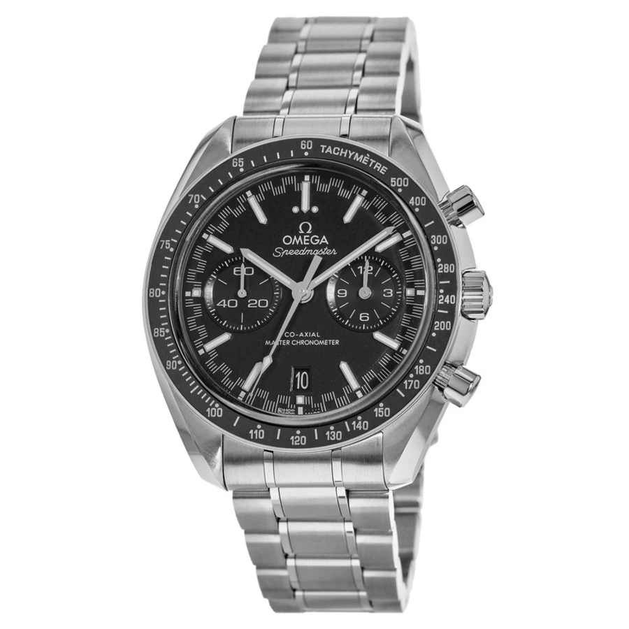 Confident and sporty in style, this high-performance men's Speedmaster Racing Master Chronometer watch is housed in a 44mm stainless steel case and powered by the Omega Co-Axial Master Chronometer 9900, which has been certified by METAS with the highest industry standard.